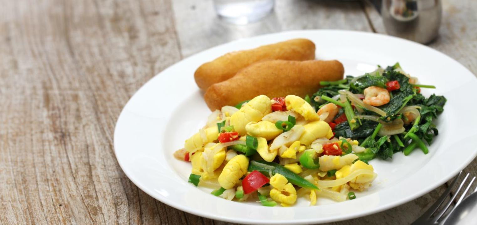 Saltfish to z kolei słona ryba, zwana także na Karaibach bacalao, bacalhau, baccalà lub suszoną rybą. Nazwa ta pochodzi nie od jej naturalnych właściwości, ale od sposobu jej konserwowania. To mięsisty biały dorsz, który dla zachowania trwałości został ususzony w soli.