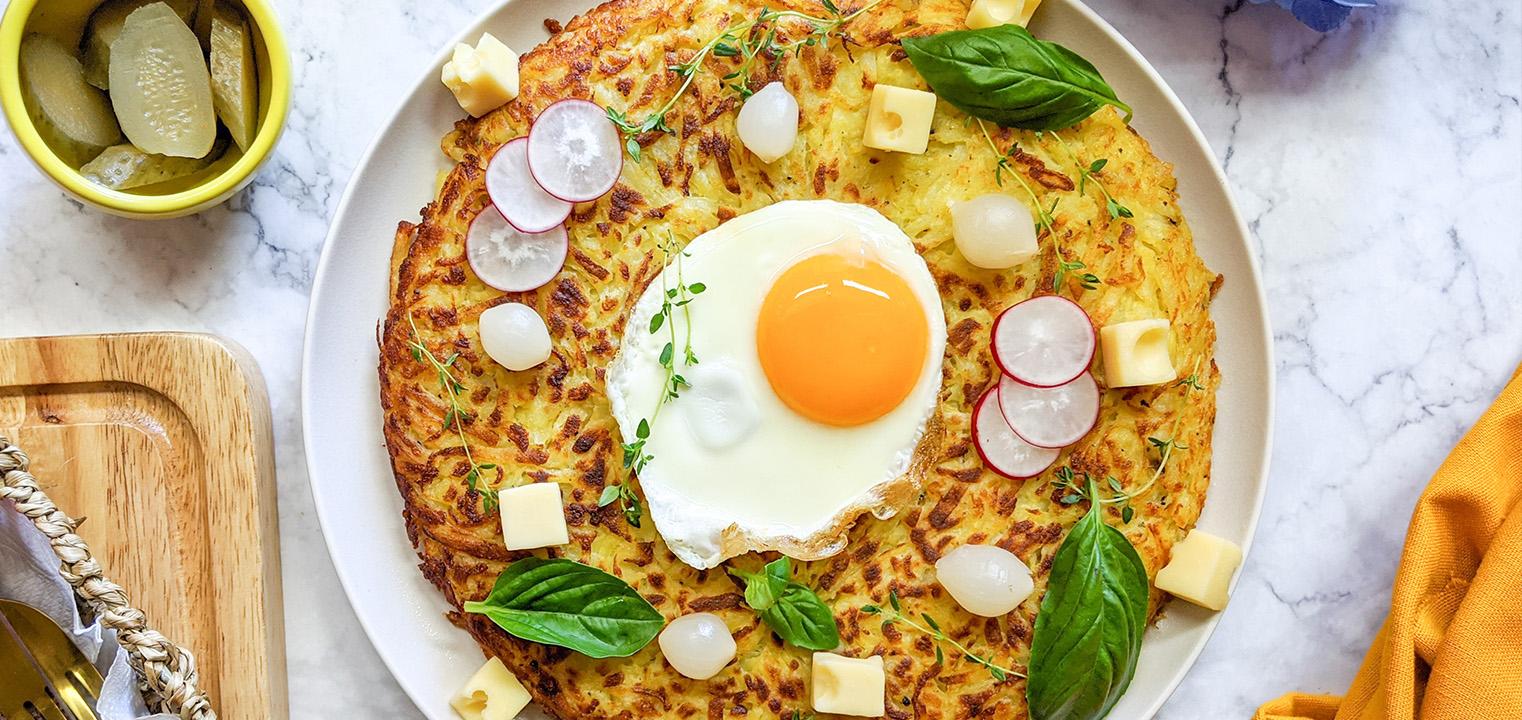 A czym właściwie jest Rösti? To nic innego, jak placek ziemniaczany, który osiąga wielkość patelni, na której jest smażony, całkowicie ją wypełniając swoją masą. Zazwyczaj ma więc około 20 centymetrów średnicy, a do tego jest gruby na około 2 centymetry.