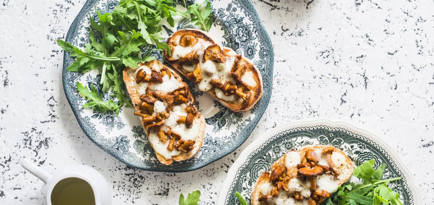 Chrupiące grzanki z kurkami, mozzarelą i rukolą - http://smakistyl.pl/chrupiace-grzanki-z-kurkami,-mozzarella-i-rukola.html