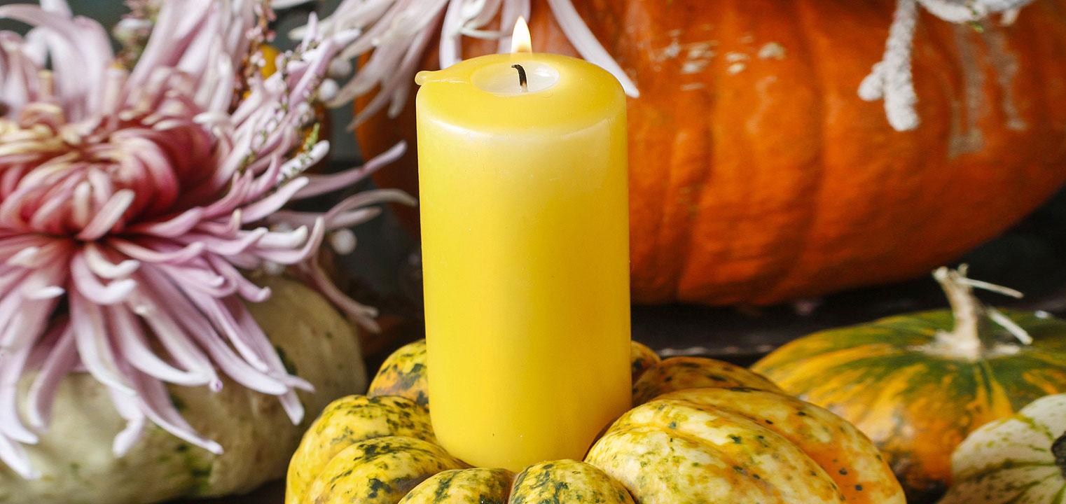 Efektownym świecznikiem będzie pękata dynia z zagłębieniem w środku, w którym łatwo umieścić wysoką, smukłą świecę. Grubsze, bardziej masywne świece można zainstalować w wydrążonych dyniach, które zyskają nowy charakter, jeśli ich górne krawędzie powycinasz w fantazyjne wzory. Jeśli świeca nie tkwi pewnie w środku, puste miejsca powypełniaj zebranymi w parku żołędziami – i jesienny świecznik gotowy. Jeden lub dwa takie świeczniki ustawione na stole podczas kolacji wprowadzą niezwykły, magiczny nastrój.