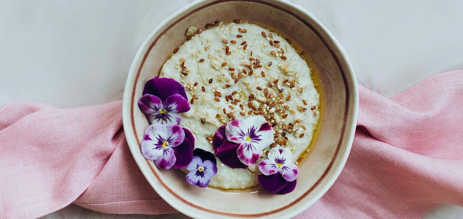 A raczej płatek na owsiance – albo jakimkolwiek innym daniu. Owsianki, jaglanki czy budynie mogą nie być zbyt estetyczne w odbiorze. Warto pamiętać, by ozdabiać je czy to płatkami jadalnych kwiatów – najlepiej w kolorach kontrastujących z kolorem naczynia, w którym je podajesz - czy to świeżymi liśćmi np. mięty. Zieleń natury doskonale sprawdza się w podbijaniu „urody” potraw – mięta, świeża bazylia, koperek czy kolendra powinny być więc nieodłącznym elementem w Twojej kuchni.