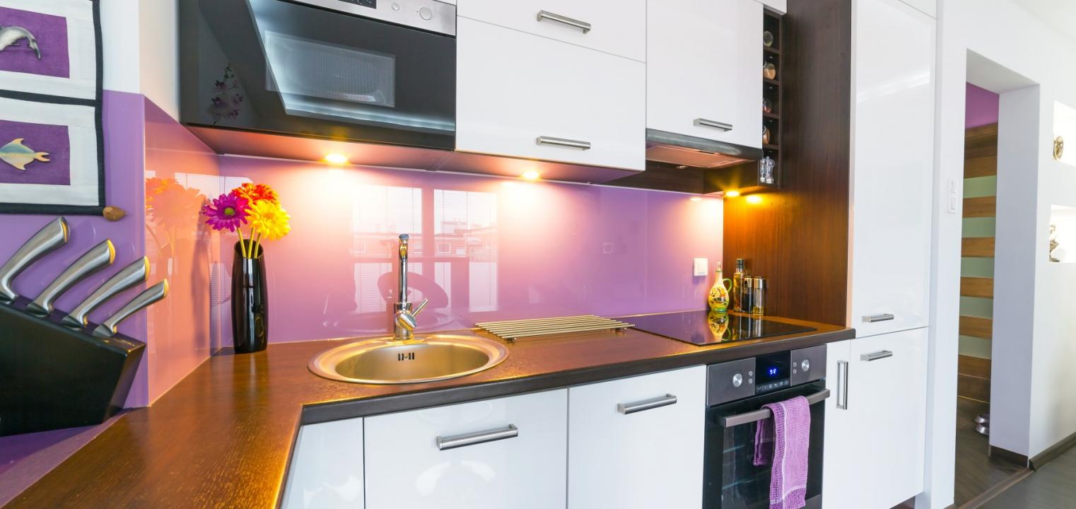 Fioletowe szafki wymuszają na właścicielu fioletowej kuchni utrzymanie nieskazitelnej czystości, a regularne sprzątanie miejsca, w którym przygotowuje się jedzenie, to same zalety. Poza tym w fioletowej kuchni człowiek czuje się luksusowo, co od razu wpływa na jakość serwowanych w niej potraw.