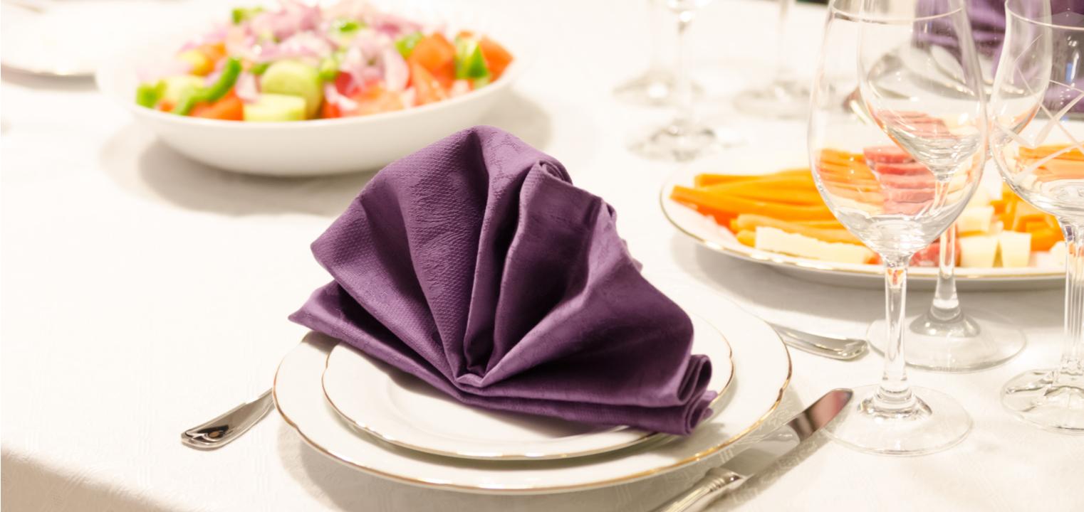 Kwadratową serwetkę (a są też okrągłe, trójkątne i prostokątne) składamy ukośnie, tak by powstał trójkąt równoramienny. Możemy ją złożyć też wzdłuż, by powstał prostokąt. Tak złożoną serwetkę kładziemy z boku nakrycia, a na niej układamy sztućce. Unikamy w ten sposób kładzenia ich bezpośrednio na obrusie, a po użyciu sztućców goście obetrą serwetką usta. Jest też inny sposób na wykorzystanie serwetki jako podkładki pod sztućce. Zwijamy serwetkę w rulonik lub pierścionek i sztućce umieszczamy wewnątrz niego. Ten zabieg wymaga już jednak nieco zręczności od gospodyni.