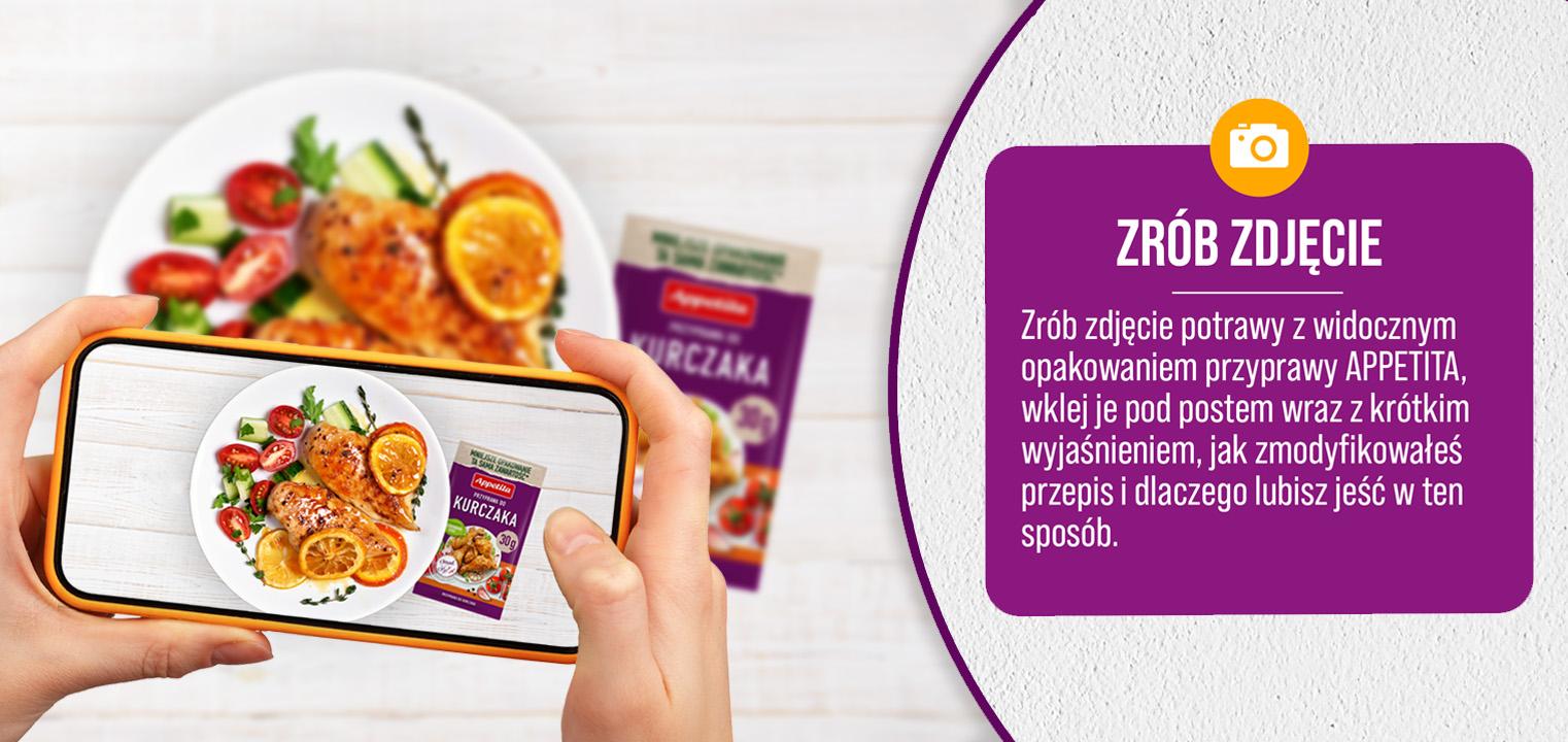 3. Zrób zdjęcie tej potrawy, na którym widoczne będzie opakowanie przyprawy Appetita i opublikuj je w komentarzu, dołączając krótkie wyjaśnienie, jak zmodyfikowałeś przepis i dlaczego uwielbiasz tę wersję dania.