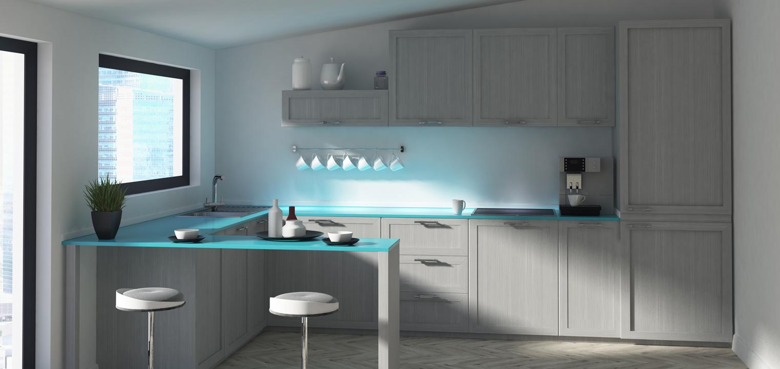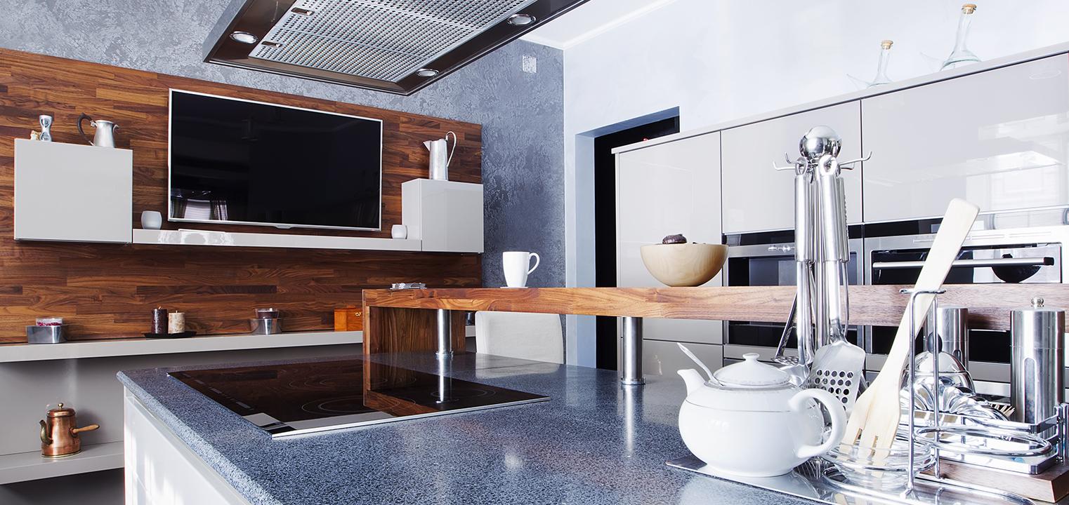 Od nowego roku możemy spodziewać się jeszcze bardziej dynamicznego rozwoju technologii, także w projektowaniu wnętrz. W kuchniach już teraz coraz częściej wykorzystuje się różnego rodzaju nowinki technologiczne, a niedługo ten trend będzie jeszcze silniejszy. Dlatego kuchnie w tym stylu pełne są nowoczesnych sprzętów, ale także, przez to, że stają się miejscem spotkań całej rodziny, stają się nowym salonem – i dlatego coraz częściej w takich kuchniach znajdują się telewizory. Co więcej – nowoczesne meble kuchenne mają nawet specjalne szafki, w które można wbudować płaski telewizor!W meblach i dodatkach widoczna jest połączona z tym stylem jednolita faktura, gładkie fronty, metalowe półki i modne ostatnio heksagony.