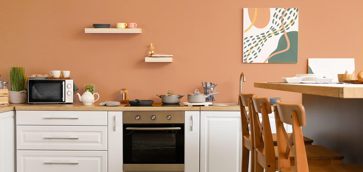 Już sama brzoskwinia przywołuje same miłe i smakowite skojarzenia… zdrowa, miękka, pachnąca, soczysta, aksamitna. Może więc jedną ze ścian kuchni ubierzmy w tę apetyczną barwę? Drewniany stół, szklany wazon, w nim astry, róże czy tulipany na tle pastelowej ściany. W takim wnętrzu z pewnością odnajdziemy upragniony spokój i pogodę ducha.