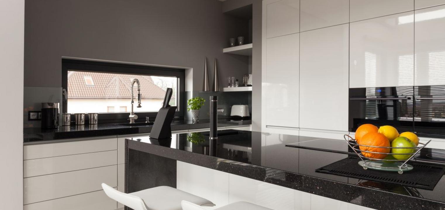 Dominują ostre kanty, geometria: prostokąty, trójkąty i kwadraty oraz nowoczesne technologie: cichozamykające się szuflady, obrotowe szafki, super chłonne i ukryte pod szafkami okapy.