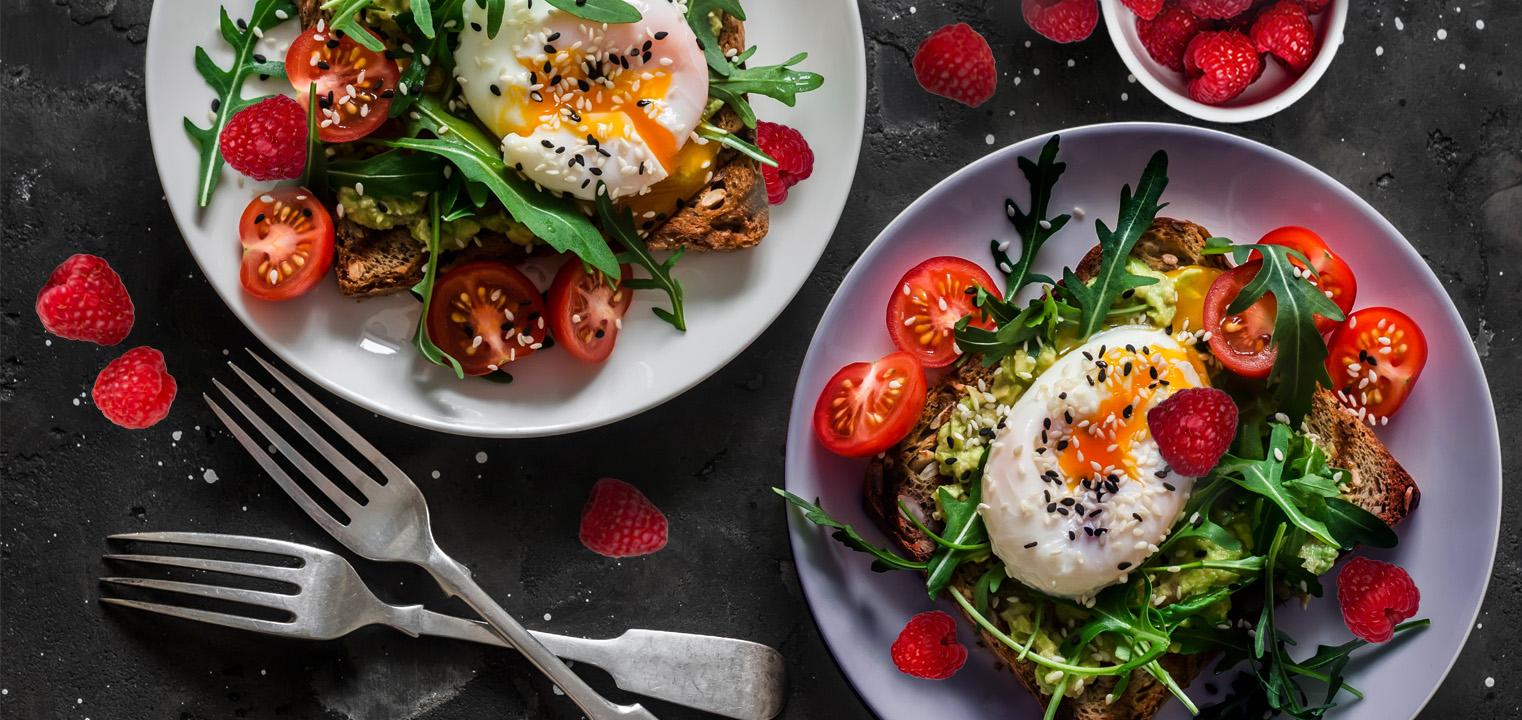 Błękitna ceramika, ciemne pieczywo, złociste jajka – i nagle garść malin zamienia się w czerwony wykrzyknik na talerzu. Owoce świetnie kontrastują z neutralnymi lub ciemnymi tonami – dlatego dodanie ich do sałatek z komosą, kanapek z burratą czy owsianki z mlekiem kokosowym działa wizualnie jak filtr vintage.