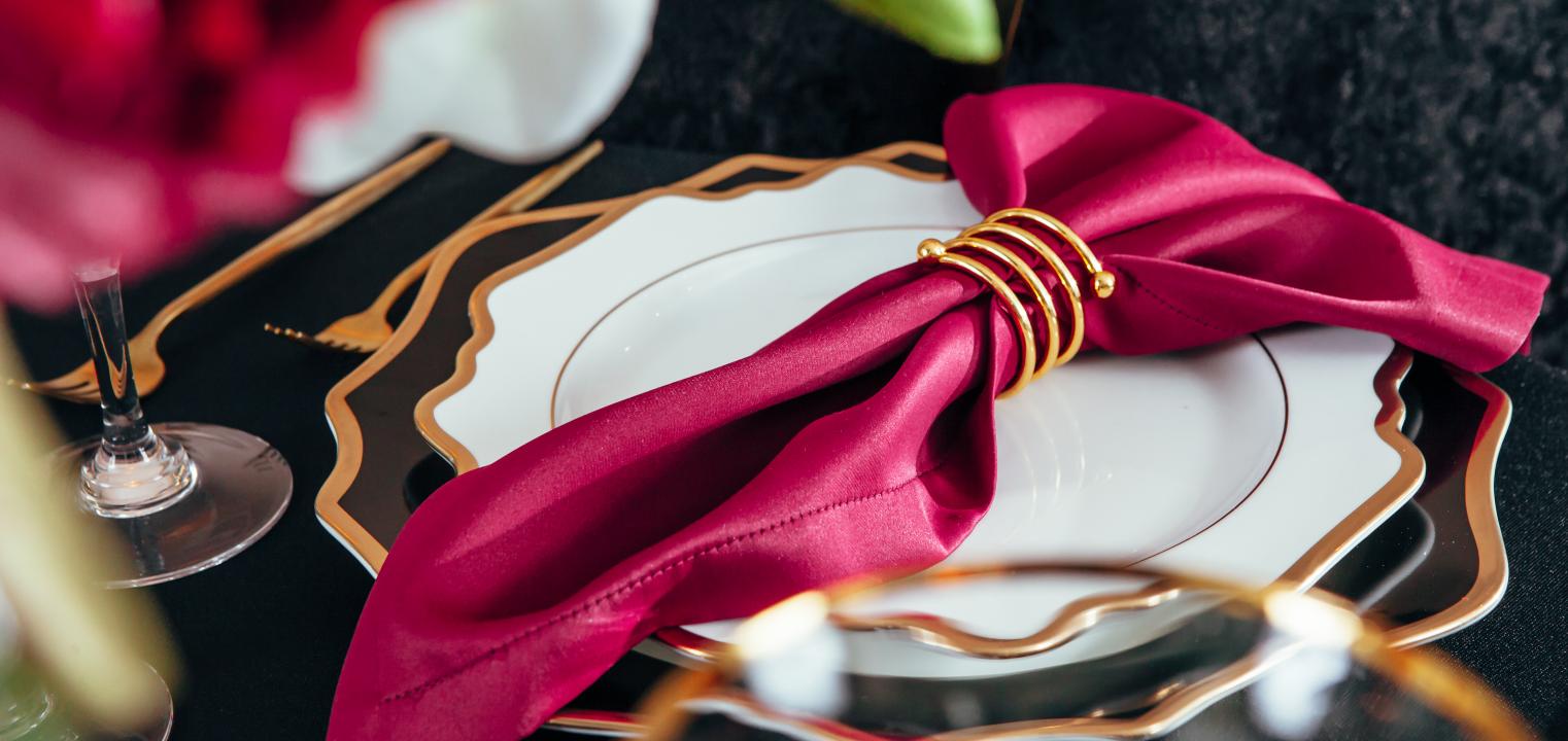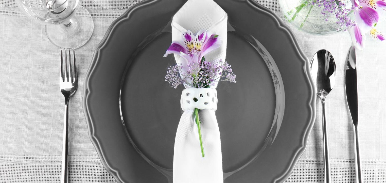 Aby ułożyć serwetki na talerzu w klasyczne cylindry, należy użyć pierścieni, które staną się stabilizatorami form oraz sprawdzą się jako dodatkowe ozdoby.