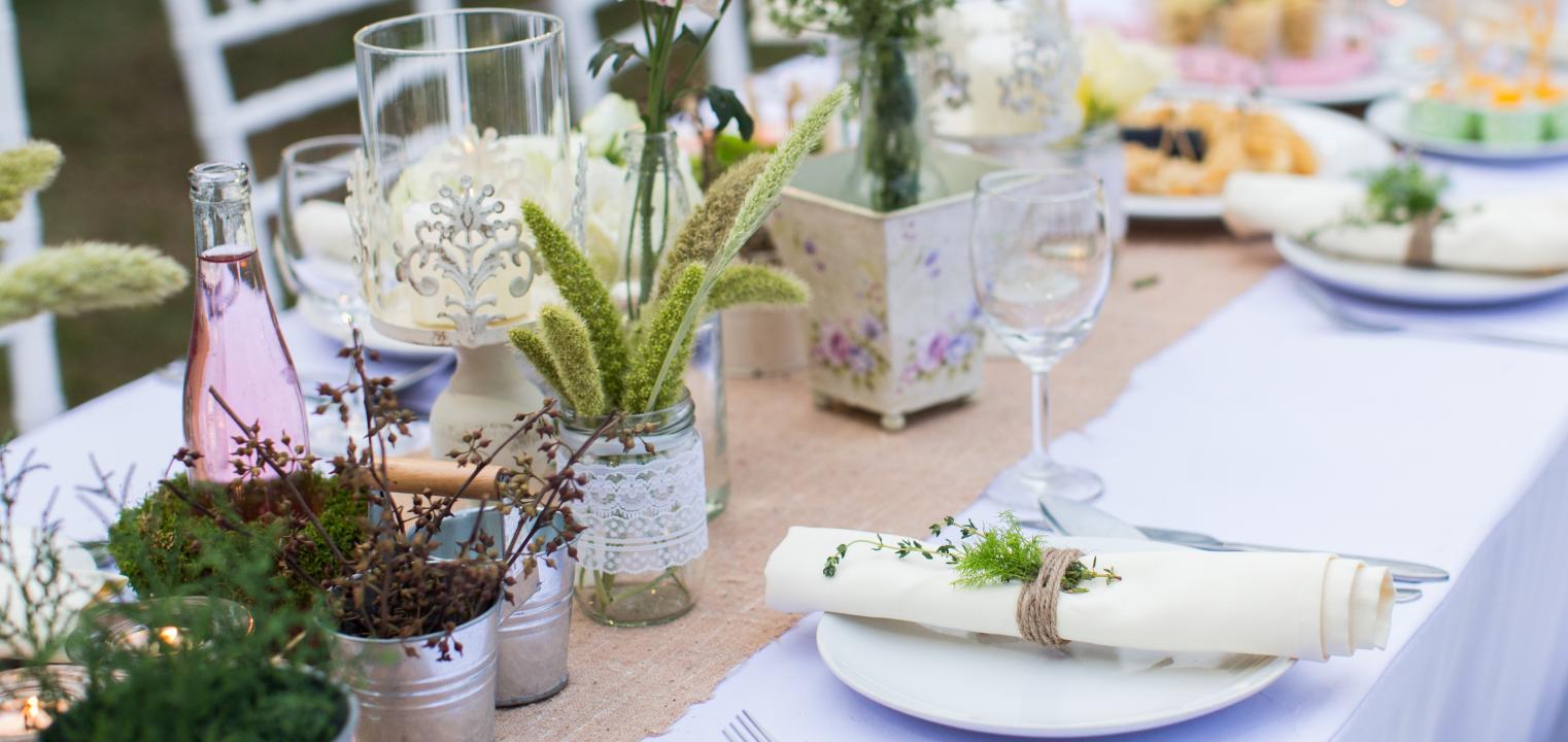 Każdej osobie, która nie lubi się wysilać, ale za to lubi przebywać w ładnym otoczeniu, proponujemy dekorację stołu w stylu ogrodu! Już sam fakt, że przyjęcie odbywa się w ogrodzie, robi dużą robotę i zdejmuje z barków organizatora wiele pracy. Wykorzystaj ładne, szklane wazony, które poustawiasz pomiędzy nakryciami. W wazonach umieść kwiaty lub kwitnące gałązki zerwane ze swojego ogrodu. Taki sielski wystrój dobrze będzie się komponował z porcelanową zastawą i babcinymi, dzierganymi na drutach serwetkami.
