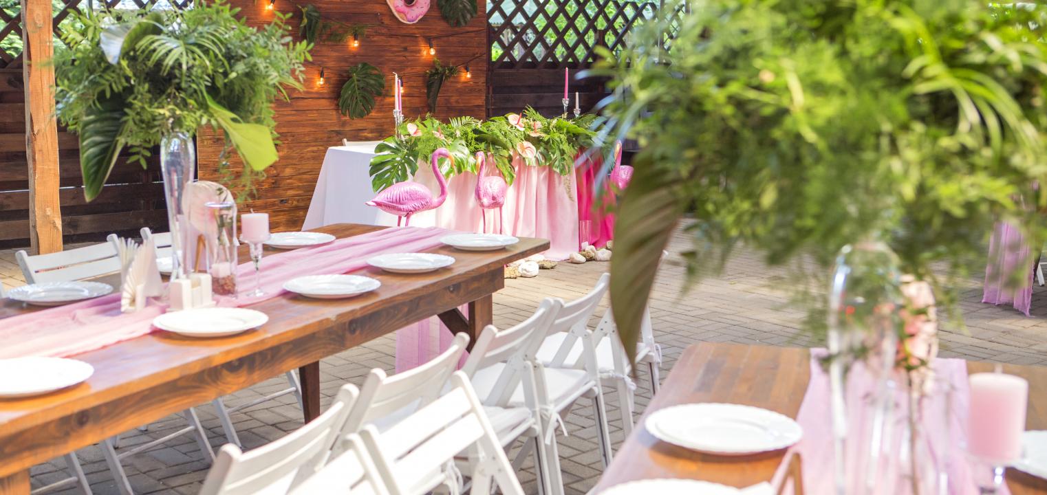 Niewielkim nakładem pracy Twoje garden party może przypominać najlepsze imprezy, jakie odbywają się na wyspie Waikiki. Zamiast obrusu użyj słomianej maty lub – jeżeli będziesz miała problem, aby taką zdobyć – plecionych podkładek dostępnych w prawie każdym sklepie z dodatkami kuchennymi. Na drzewach zawieś własnoręcznie wykonane lub kupione girlandy z palmami i flamingami. Zadbaj o odpowiedni kolor naczyń – najlepsze będą różowe oraz niebieskie. Zrób kolorowe naszyjniki z bibułkowych kwiatów, które wręczysz na wejściu gościom. Wisienką na torcie niech będą prawdziwe 2-3 ananasy stojące na stole.