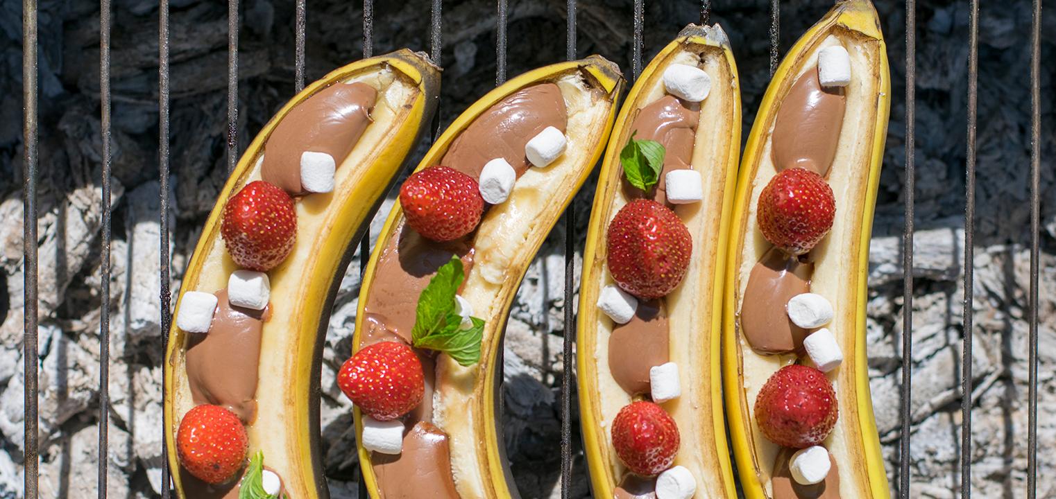 A co na deser? Również potrawy z grilla, i to jakie! Zacznijmy od banana: przekrójcie go wzdłuż i powkładajcie do środka kostki czekolady. Tak przygotowany deser zawińcie w folię aluminiową i połóżcie na środek rusztu. Smak Was zaskoczy! Ale mamy też inną propozycję deseru – szaszłyki z truskawek i pianek marshmallow – wystarczy powkładać je naprzemiennie na patyk. Dzieciaki będą zachwycone!
