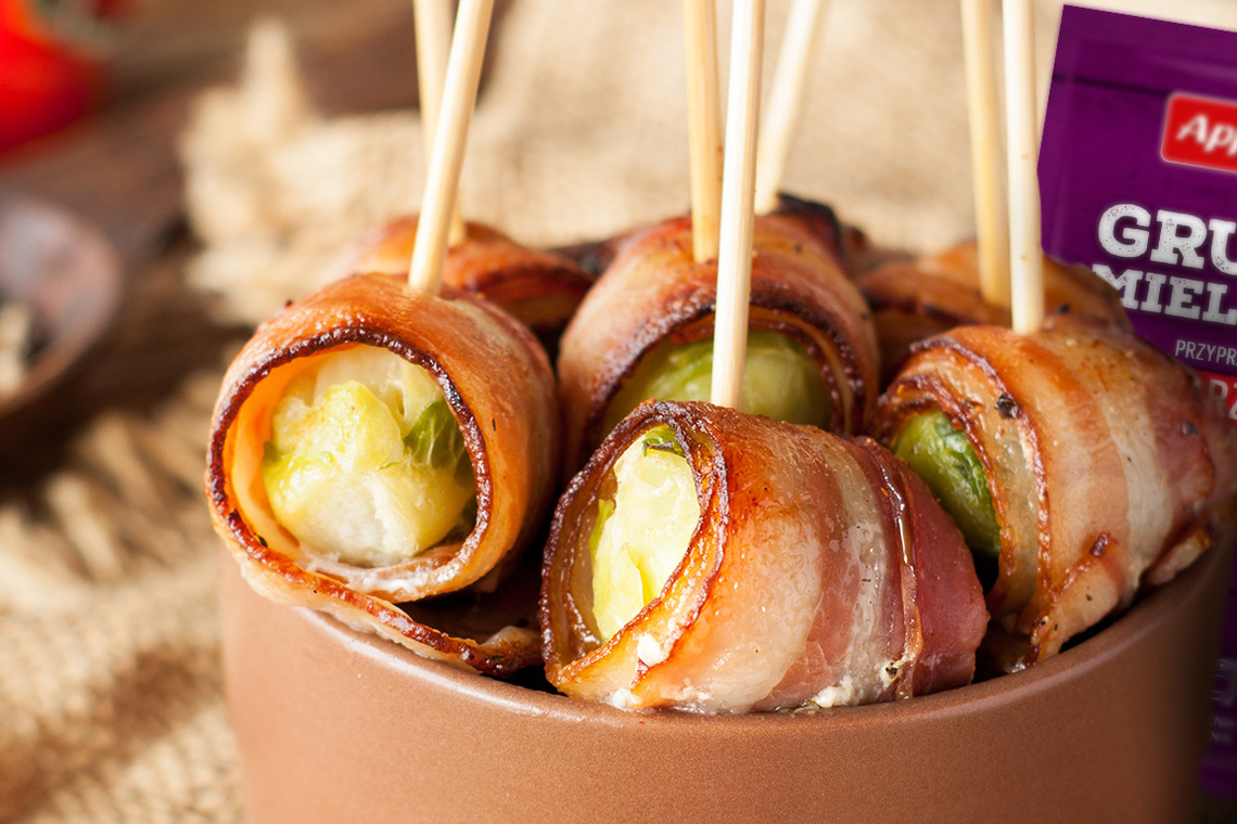 Mini koreczki z boczku i brukselki