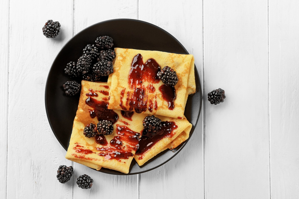 Wegańskie naleśniki z domowym dżemem jeżynowym