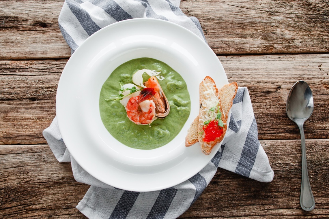 Zupa krem ze szpinaku z krewetkami