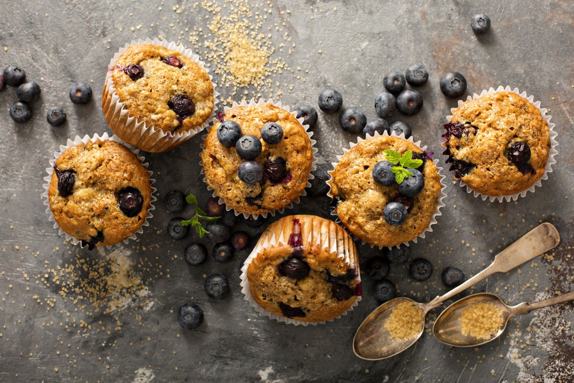 Wegańskie muffiny bananowe z jagodami