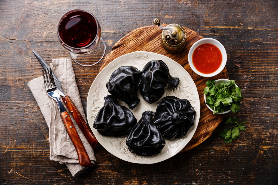 Czarne pierożki chinkali