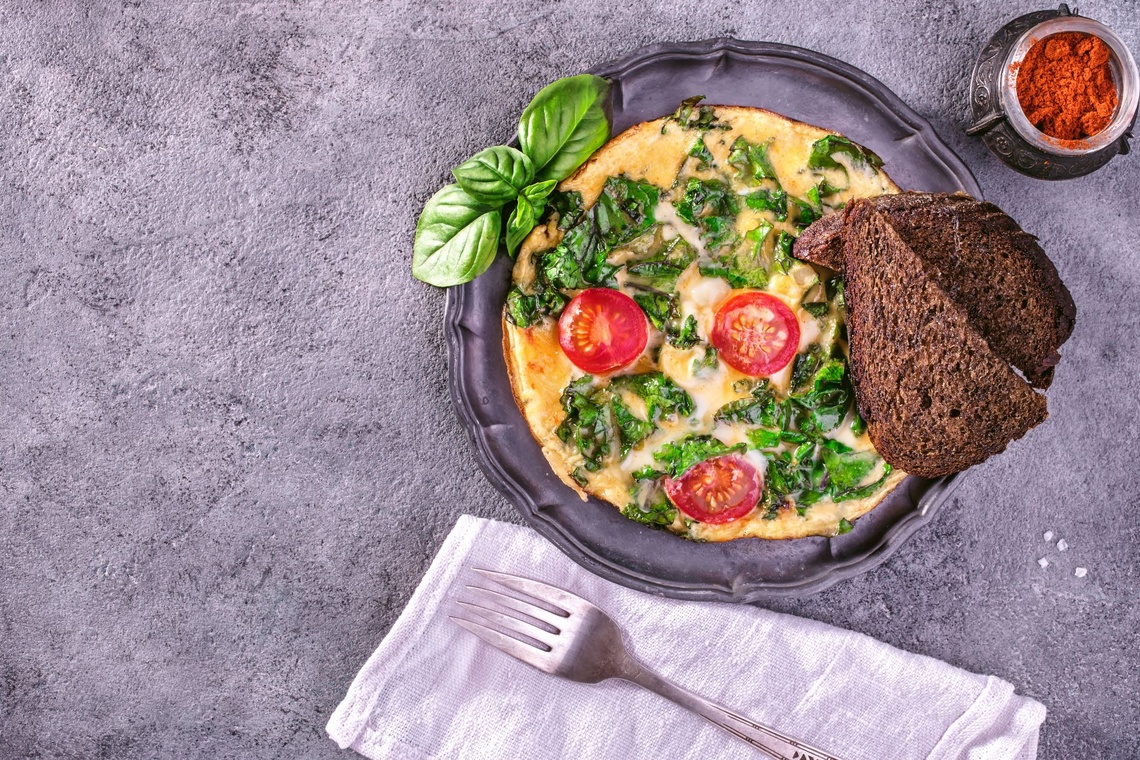 Omlet z jarmużem i pomidorami