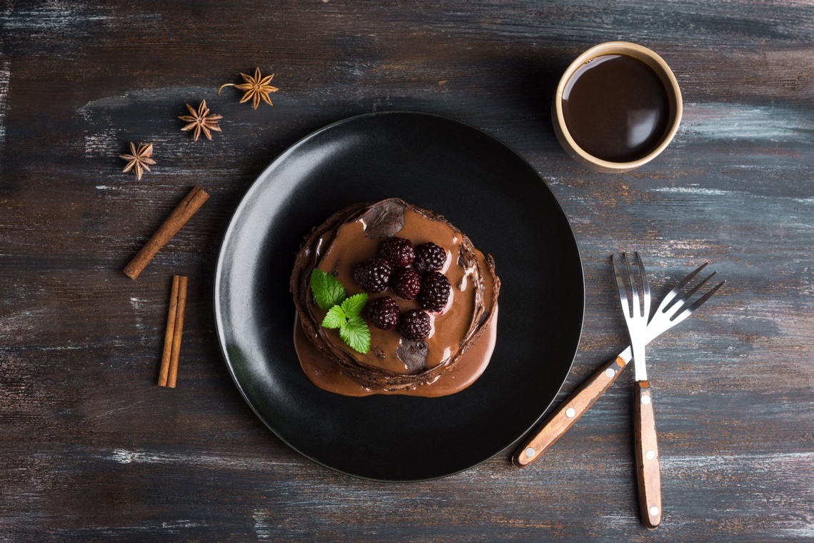 Wegańskie placki kakaowe z gorącą polewą czekoladową
