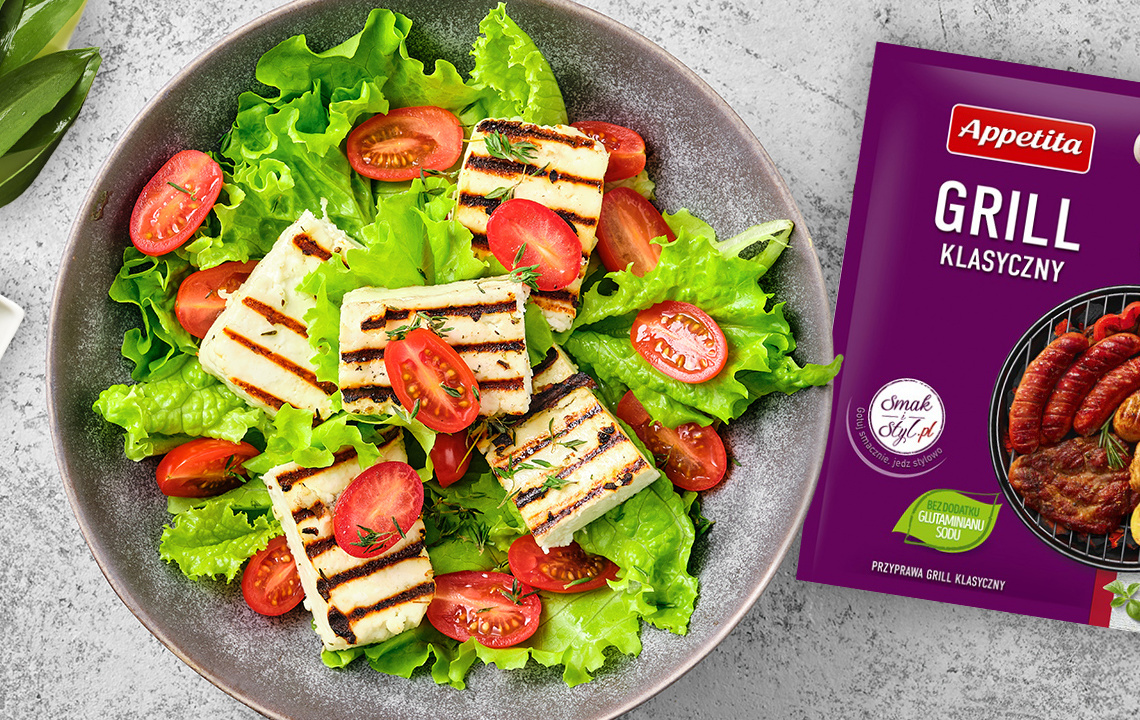 Sałatka z grillowanym halloumi i pesto z czosnku niedźwiedziego