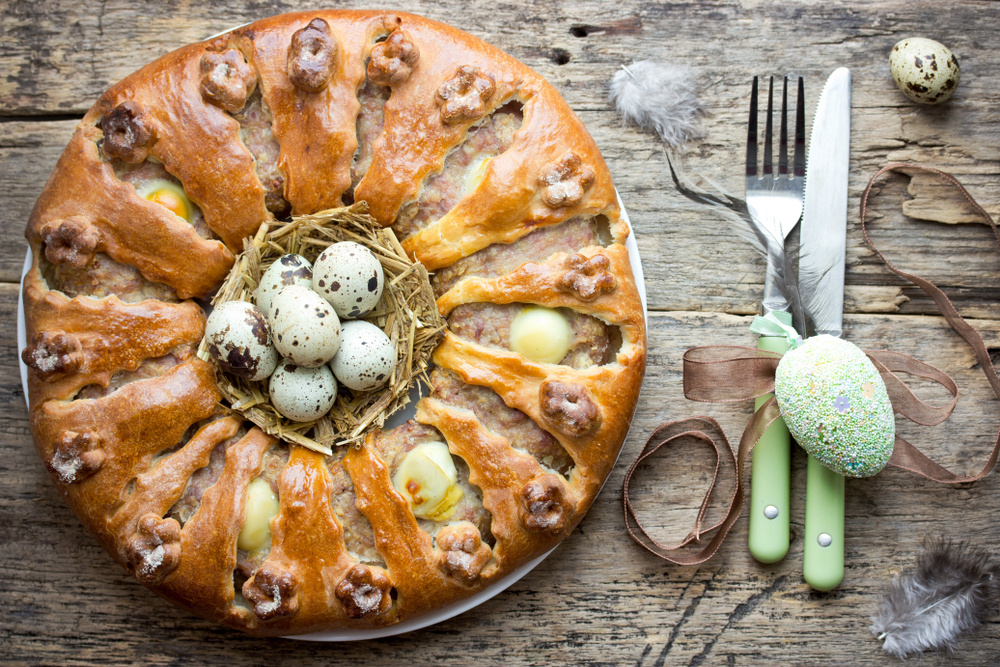 Wielkanocny wieniec drożdżowy z mięsem