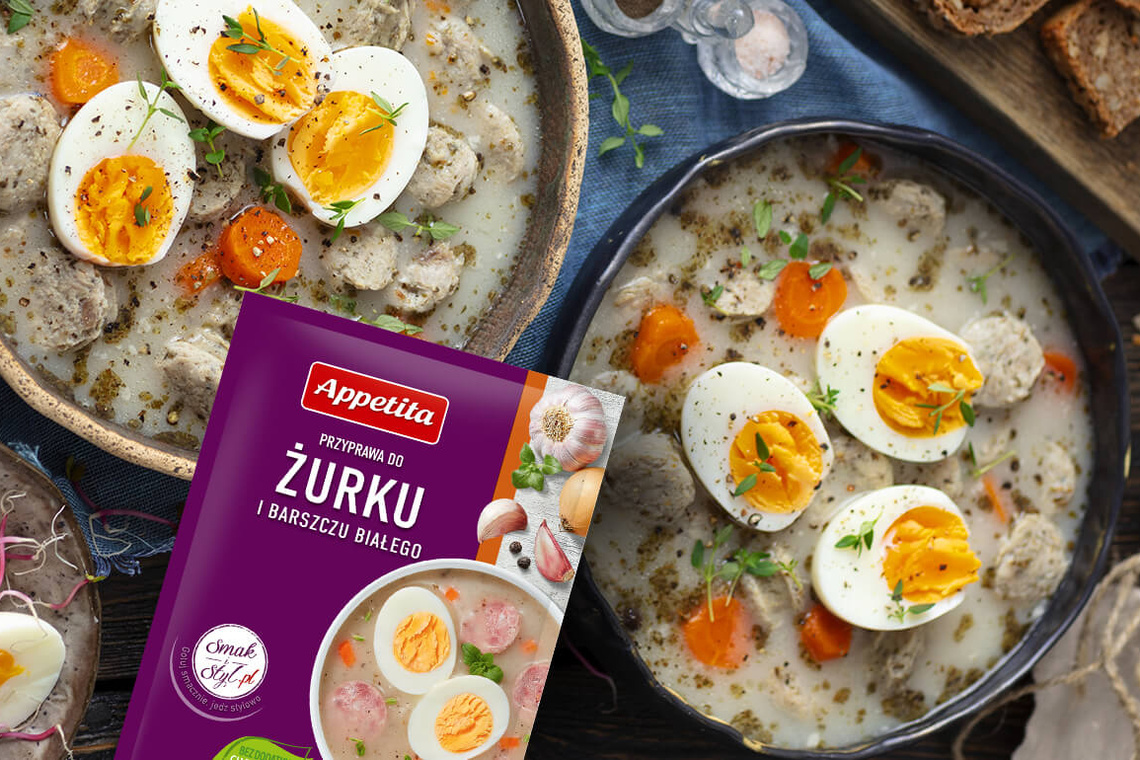 Barszcz biały z kiełbasą i jajkiem