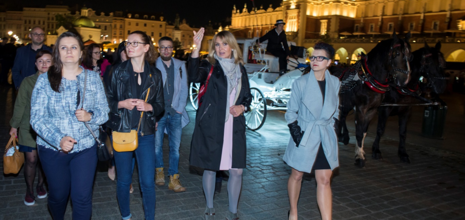 Wiosenny, ciepły wieczór zachęcił uczestników do spacerowania po klimatycznym Krakowie – wycieczce trudno było się oprzeć tym bardziej, że przewodnikiem po Starym Mieście była sama Ewa Wachowicz!