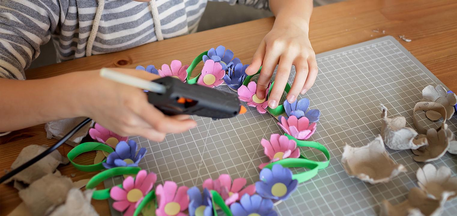 Do wykonania wianków będziecie potrzebować talerzyków papierowych, kolorowych bibułek, nożyczek i kleju. Mniejsze dzieci rodzice muszą wyręczyć w wycinaniu obręczy z talerzyków, starsze sobie poradzą. Maluchy przygotowują kawałki bibułek w kształcie kwiatów, a następnie przyklejają je do talerzyków, tworząc piękne, wiosenne wianki na Wielkanoc.