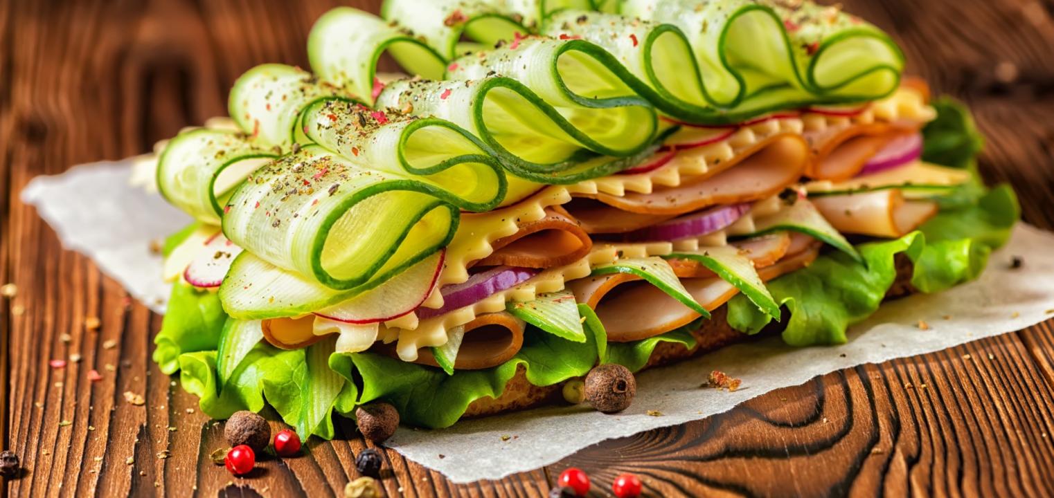 Liście sałaty jako dekoracja to pomysł nienowy, ale obecnie dostępnych jest na rynku tyle jej gatunków, że mamy dużo więcej możliwości. Każda z sałat prezentuje się inaczej. Duże, zewnętrzne liście najbardziej popularnej u nas sałaty masłowej zwykle podkładamy pod kanapki i koreczki, z kolei mniejsze, bardziej chrupiące i jaśniejsze listki ze środka główki można wkładać pomiędzy plastry wędlin czy kawałki warzyw i owoców. W liście sałaty można też zawijać różne składniki dań, na przykład kawałki mięsa czy wędlin. Bardzo dekoracyjna sałata Lollo o karbowanych bordowych lub zielonych listkach pięknie komponuje się z warzywami, sałatkami i wędlinami. Krucha sałata lodowa z kolei najlepsza jest do kanapek albo jako składnik sałat. Dekoracyjna jest również sałata rzymska, z której można robić na talerzu prawdziwe bukiety.