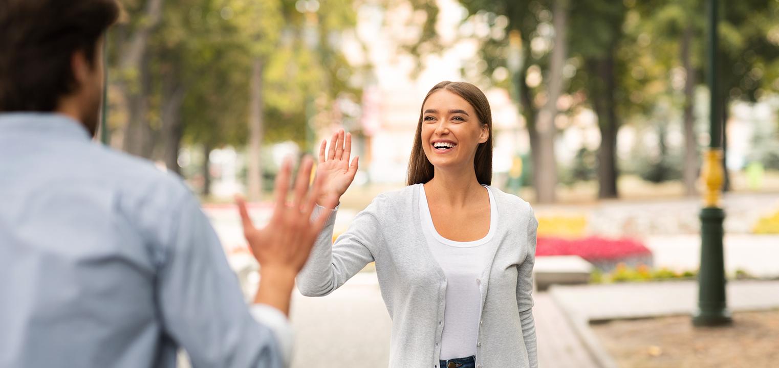Jeśli w trakcie spaceru mijasz dalszego znajomego lub kogoś, kogo znasz jedynie „z widzenia”, nie ignoruj go - uśmiechnij się i nawiąż kontakt wzrokowy. To proste gesty, które sprawiają, że spotkanie jest przyjemniejsze i bardziej uprzejme. Jeśli natomiast widzisz, że ktoś chce zachować dystans lub jest zajęty swoimi myślami, szanuj jego prywatność i nie narzucaj rozmowy.