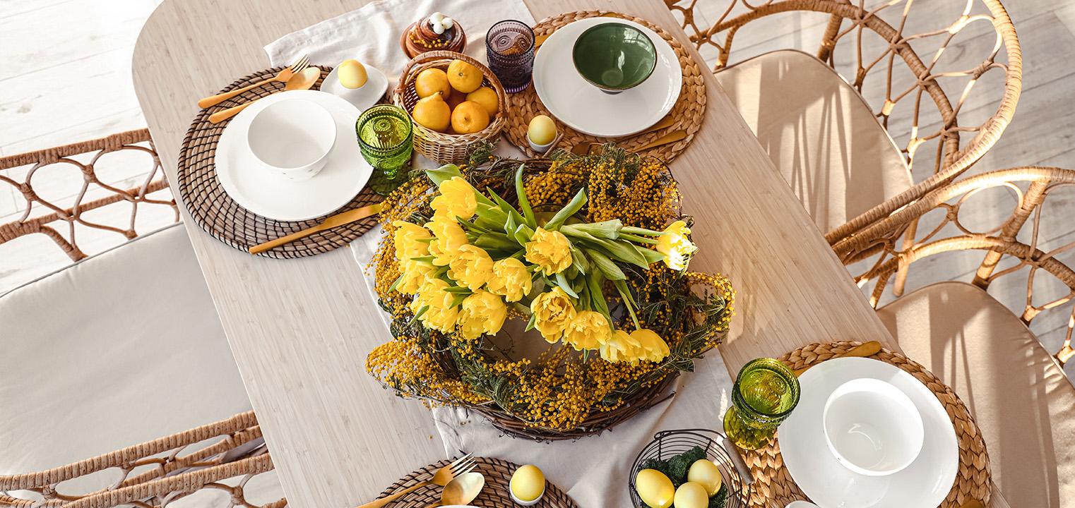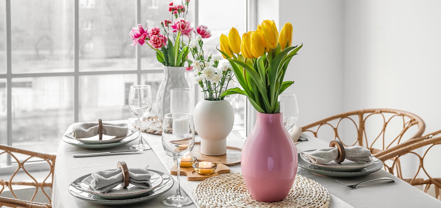 Zimą Wasze stoły przyodziane są świąteczną czerwienią lub błyszczącym sylwestrowym brokatem, luty przynosi nam zawsze moc serduszkowych dekoracji. Po tym okresie zawiesiste, korzenne zapachy schowajmy już do zimowego zasobnika. Idzie wiosna, a wraz z nią świeże jak nowalijki pomysły na dekoracje stołu. Przedstawiamy Wam trzy trendy królujące w tym sezonie.